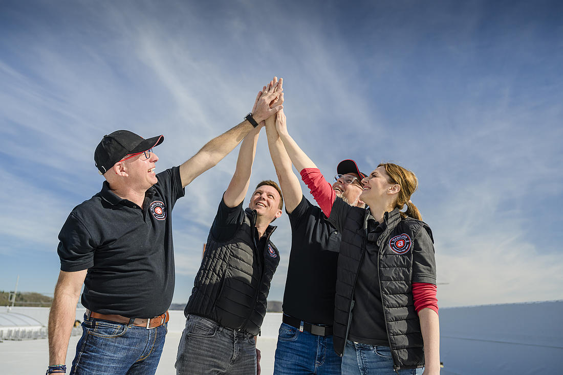 "zusammen hier oben." steht für unsere Überzeugung. Diesen Satz leben wir Tag für Tag, weil er uns am Herzen liegt. Wir stehen an der Seite unserer Kunden, denken aus deren Sicht und liefern Produkte und Services für die Praxis. Gemeinsam mit Dachdeckern, Architekten, Planern und Handel planen und realisieren wir die besten, langlebigsten und schönsten Flachdächer. Wie wir ticken und was wir leisten erfahrt ihr hier.