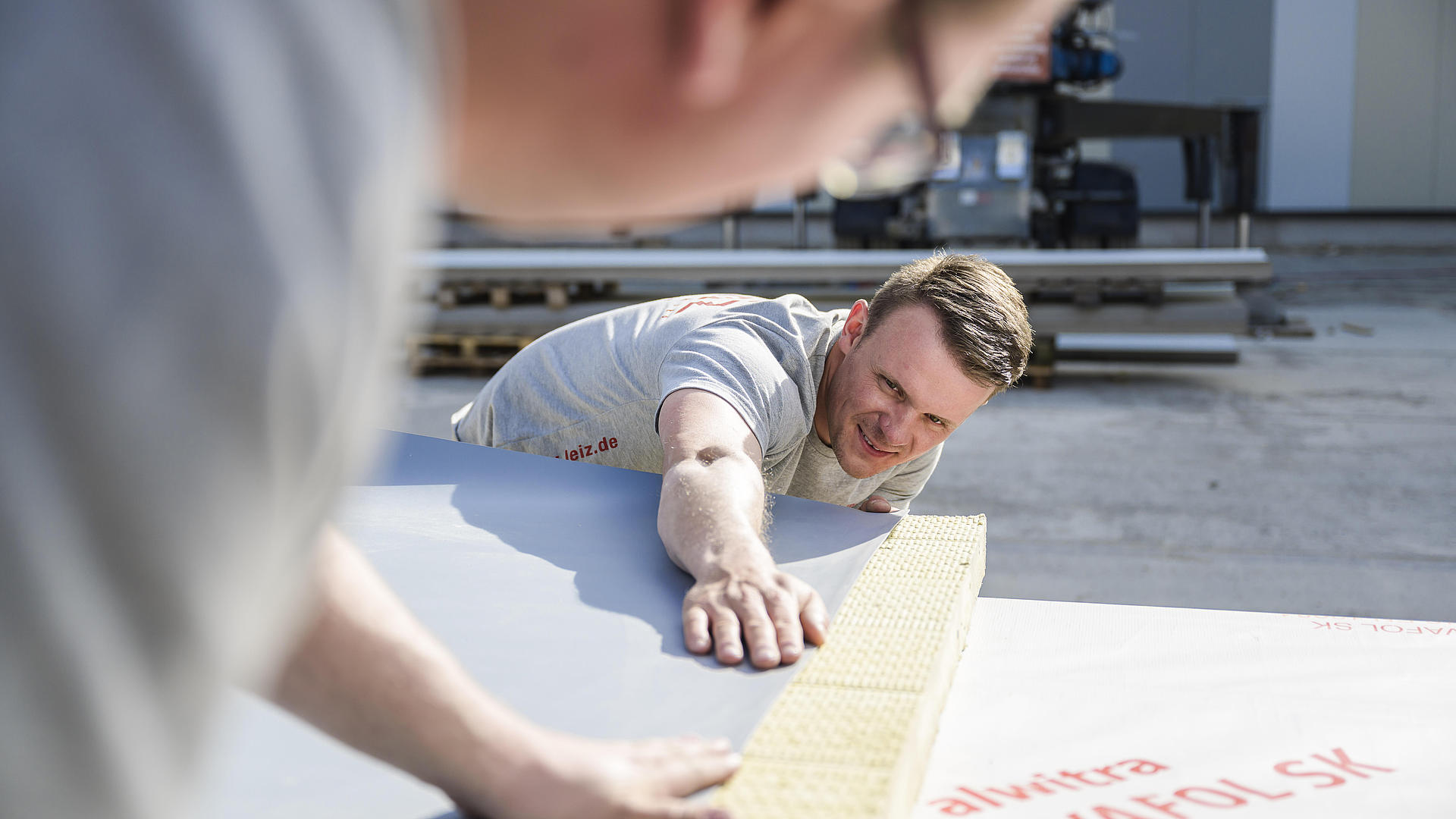 Mit EVAROC® Dämmplatten und EVAROC® G Gefälle-Dämmplatten aus hochwertiger Steinwolle und der PE-Dampfsperre EVAFOL SK gehen wir aus der horizontalen auch in die vertikale Dach-Ebene.