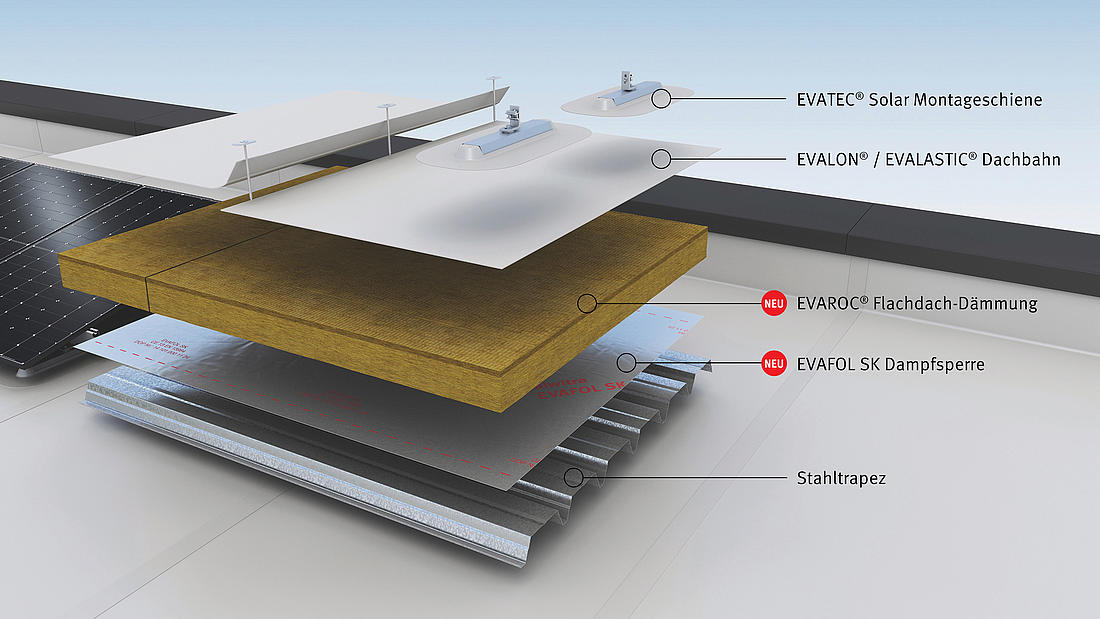 EVAROC® Flachdach-Dämmplatten aus hochwertiger Steinwolle bieten effektive Wärme- und Schalldämmung sowie vorbeugenden Brandschutz für nicht belüftete Flachdächer. Die innovative Zweischicht-Struktur mit verdichteter Oberlage sorgt für hohe Druckfestigkeit und Langlebigkeit – ideal bei starker mechanischer Beanspruchung.
