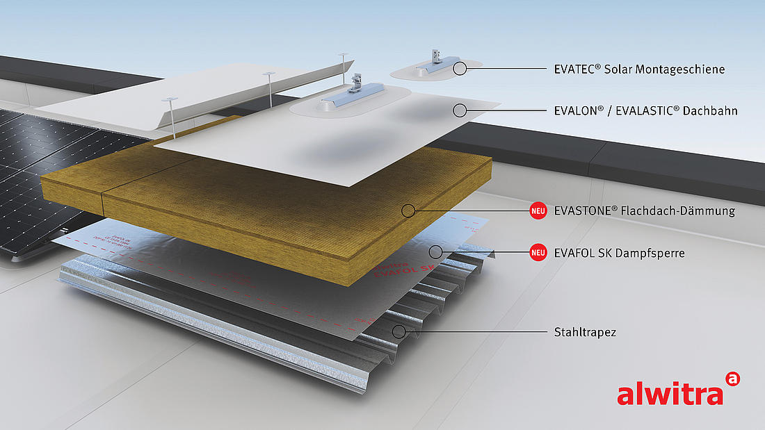 Die neuen EVASTONE® Flachdachdämmplatten aus Steinwolle eignen sich zur Wärmedämmung, Schalldämmung und zum vorbeugenden Brandschutz bei einschaligen, nicht belüfteten Flachdächern auf allen üblichen Untergründen. Dank der integrierten Zweischicht-Charakteristik mit hoch verdichteter Oberlage weisen sie eine verbesserte Widerstandsfähigkeit gegen mechanische Beanspruchungen auf.