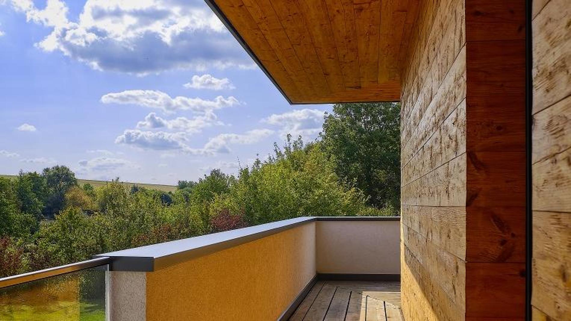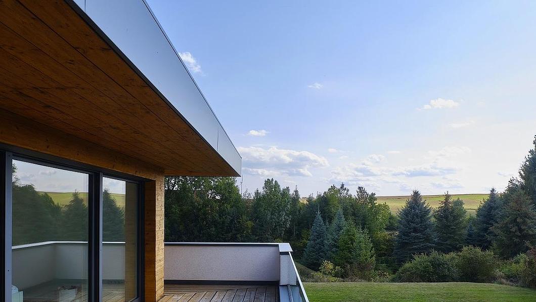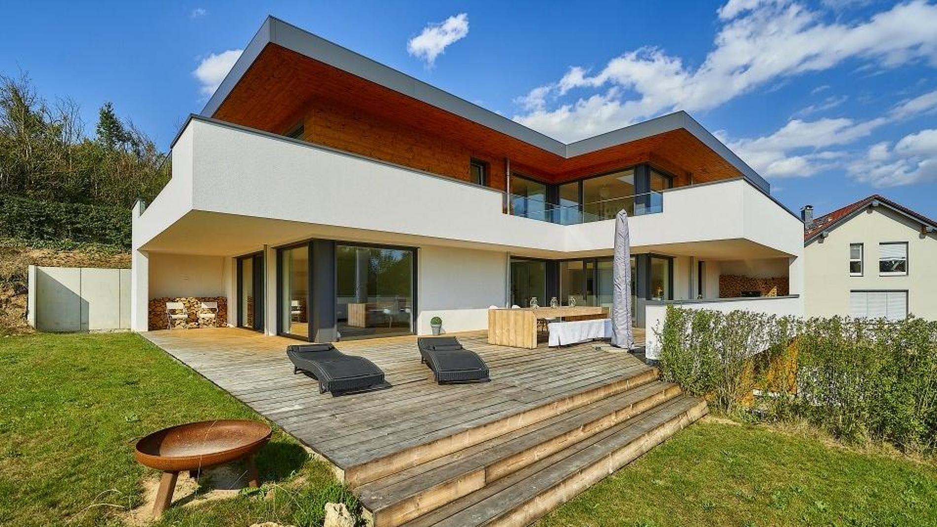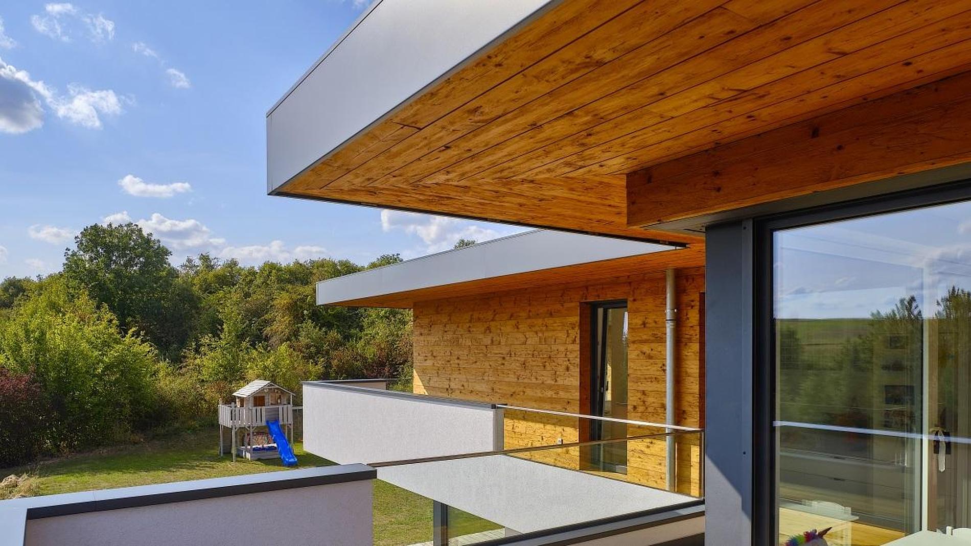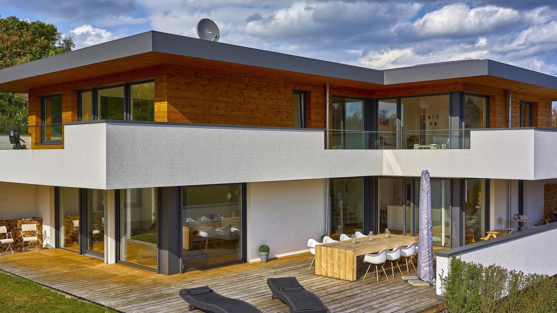Beim Bau seines großzügigen Einfamilienhauses stand Sven Gerber Planer und Bauherr in Personalunion, vor folgender Situation: Seinem Flachdach-Entwurf stand die Vorgabe des Bebauungsplans entgegen. Seine einfache, aber wirksame Idee: Er umfasste das nur 10 Grad geneigte Walmdach mit einer hohen Attika. Dadurch erzielte des den Anschein eines Flachdachs und erfüllte zugleich die Vorgaben des Bebauungsplans.