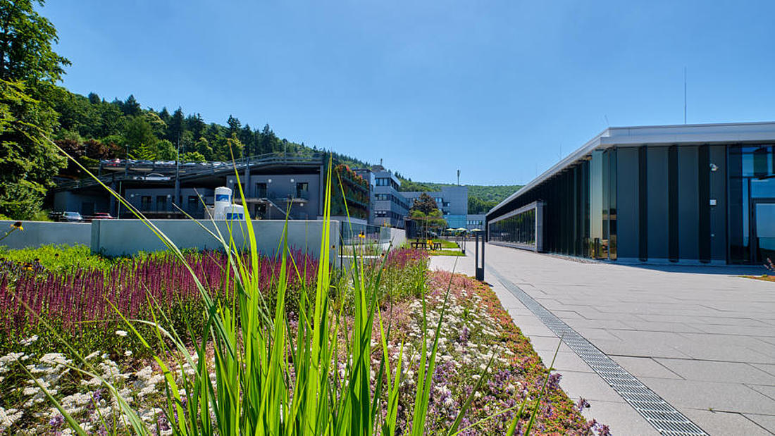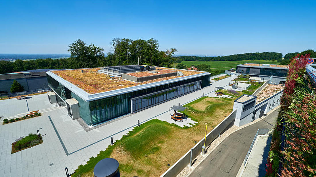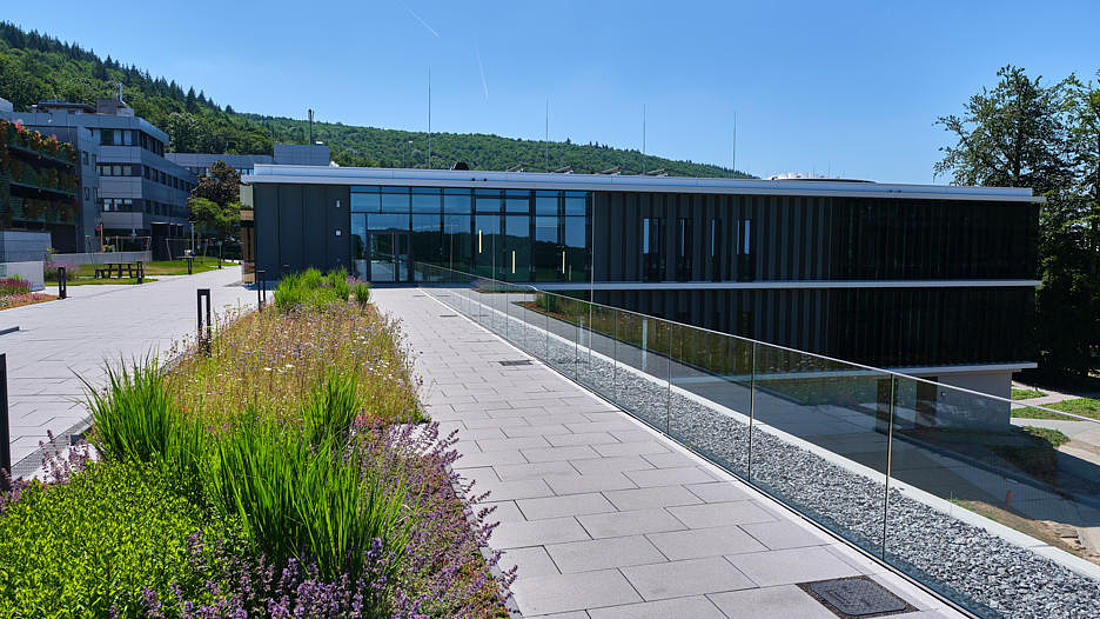Hoch über der Stadt Heidelberg an der Südwestflanke des Königstuhls liegt das Gelände des European Molecular Biology Laboratory, kurz EMBL. Hier ist nicht nur das Hauptlaboratorium, sondern auch das Headquarter des von mehr als 20 Mitgliedsstaaten getragenen, internationalen Grundlagenforschungsinstitutes beheimatet. 2021 wurde nach zweijähriger Bauzeit mit dem Forschungszentrum für Elektronen- und Lichtmikroskopie EMBL Imaging Centre eine weitere, in dieser Art weltweit führende Einrichtung eröffnet. Der Neubau stellt die Verbindung zwischen Wissenschaft und Natur her. Das spiegelt sich sowohl in der Architektur als auch in der Wahl der eingesetzten Materialien wider.
