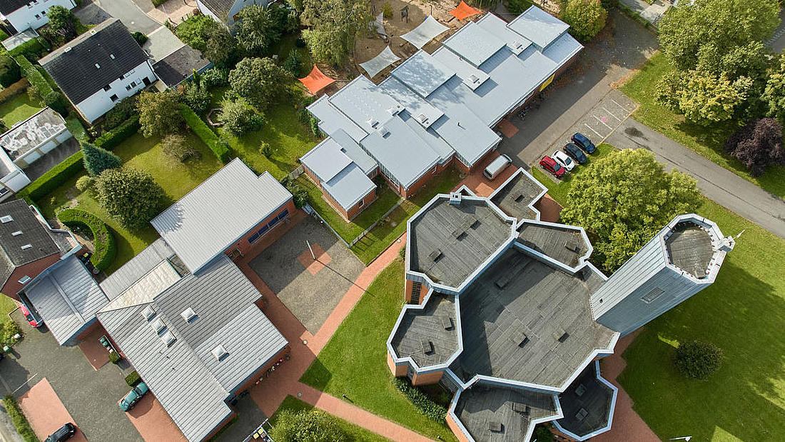 Andauernde Probleme mit einem undichten Zinkstehfalzdach einer katholischen Kindertageseinrichtung in Rheda-Wiedenbrück erforderten eine umfassende Sanierung. Besondere Herausforderung: Das Zeitfenster für Abriss und Neuabdichtung inklusive des Austausches von sechs Lichtkuppeln war mit drei Wochen sehr eng. Hier musste einfach alles passen, damit die rund 900 Quadratmeter große und auf 15 ineinander verschobene Pultdächer verteilte Dachfläche mit dem hochwertigen Flachdachsystem EVALON® von der Trierer alwitra GmbH saniert werden konnte.