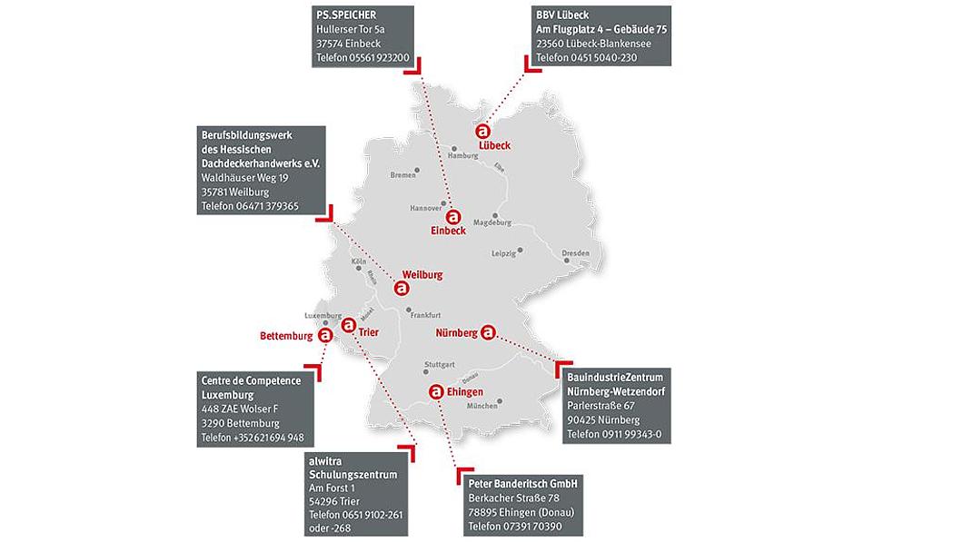 Hier werden alle wichtigen Detailausbildungen und Anschlusslösungen fach- und regelkonform aus dem alwitra-Produktsystem praxisnah trainiert:
