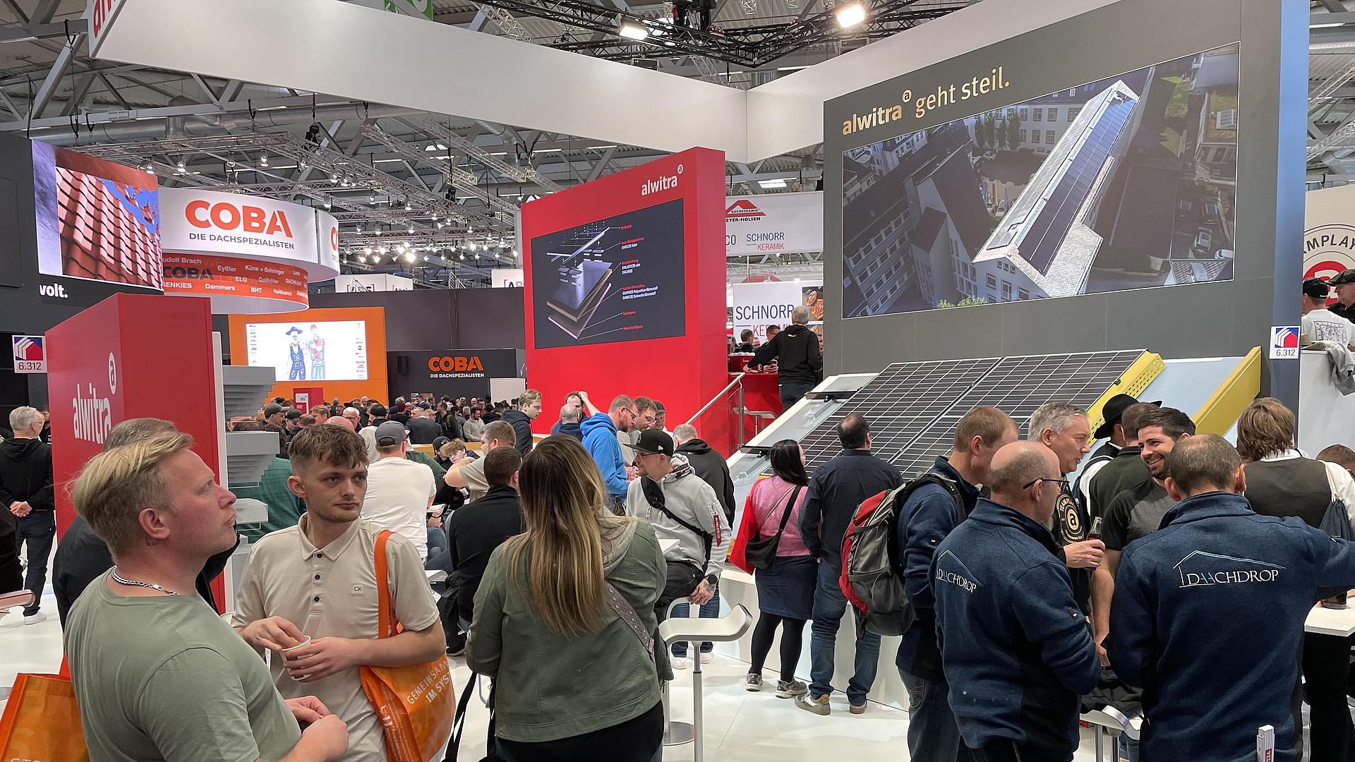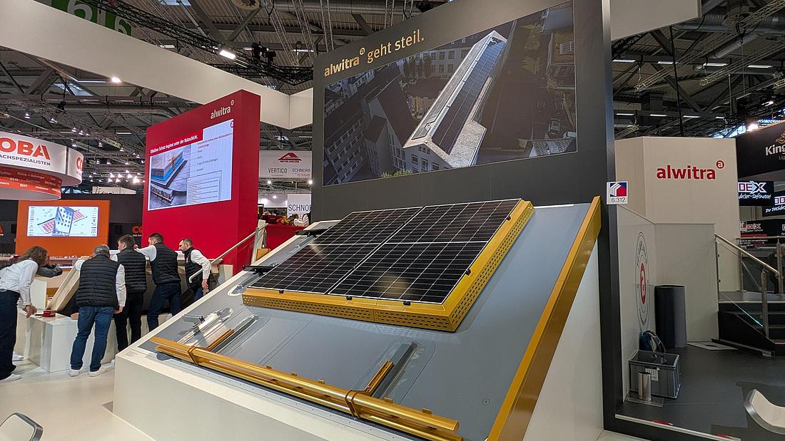 Unter dem Leitmotiv „Schwarz. Gold. Steil.“ zeigten wir, wie sich Dämmung, Abdichtung, Photovoltaik und Dachrand zu durchgängigen Systemlösungen verbinden lassen. Im Mittelpunkt stand dabei die Erweiterung unseres EVALON®-Programms für geneigte Dächer.