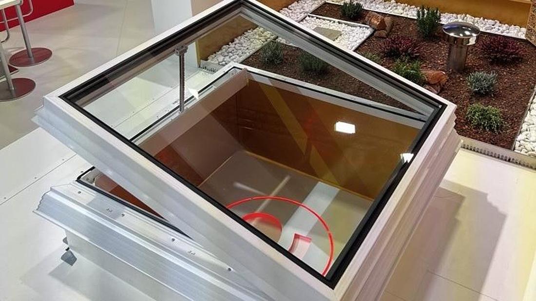 Das hochwertige Echtglas-Flachdachfenster FDF neo ergänzt den Aufsetzkranz zu einer technisch und optisch abgestimmten Systemlösung inklusive alwitra Motorabdeckung zur optischen Kaschierung des Antriebs.